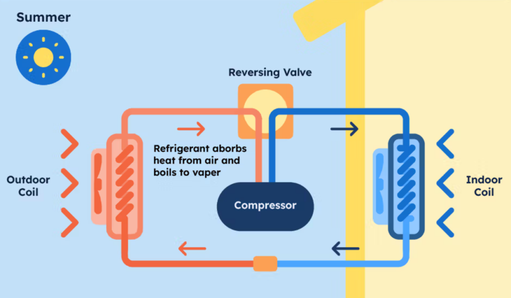 It is essential to understand that heat pumps transfer heat from one area to another for heating and cooling. They draw heat energy from the outside air throughout colder months and move it inside to heat your home. And to cool you off in the summer, the heat pump takes heat energy from inside your home and releases it outside.